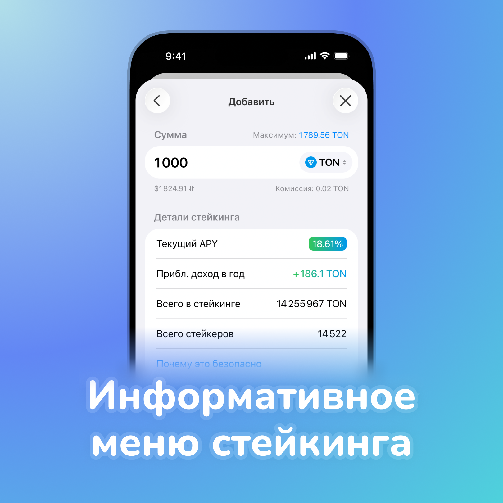Наблюдайте за общим TVL (суммарной стоимостью заблокированных средств) и количеством стейкеров прямо в меню стейкинга.